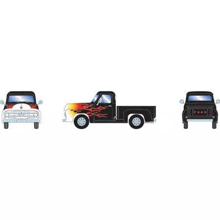 Athearn #26464 HO RTR 1955 Ford F-100 Pickup, Black/Flames