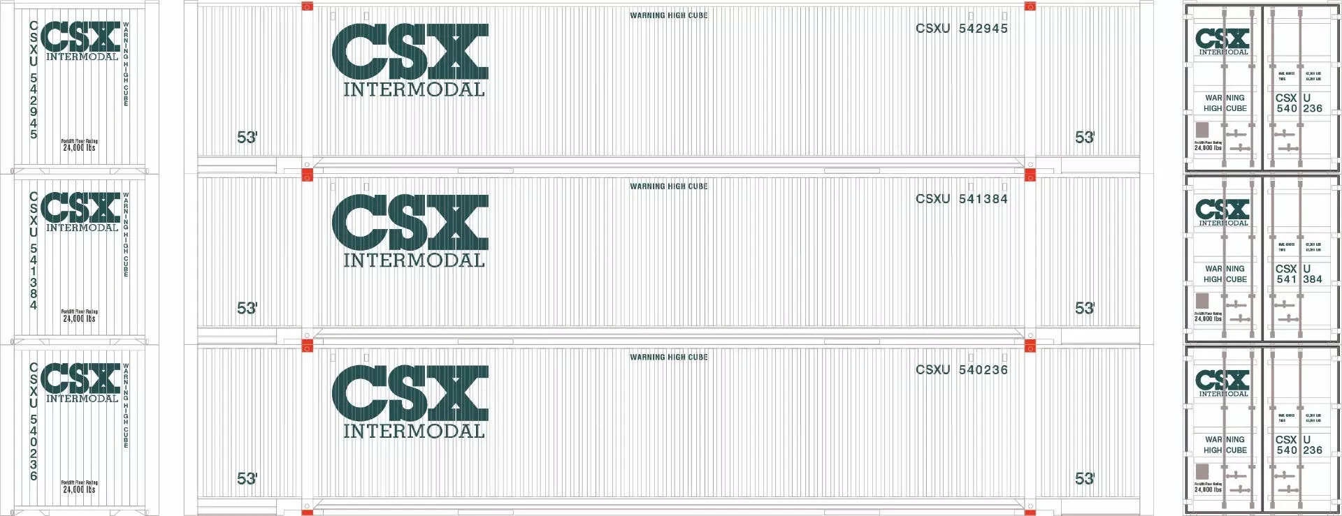 Athearn 26525 HO 53ft Jindo Container CSXU 540236/541384/542945