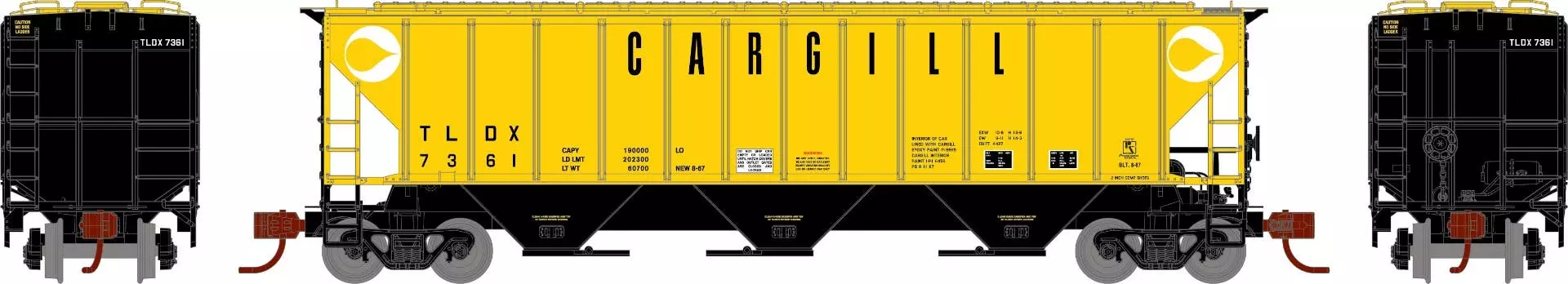 MODEL FEATURES Brand new N-scale model Fully assembled and ready for your layout Weighted for optimum performance Body mounted McHenry operating scale knuckle couplers Roller bearing trucks with 36” machined metal wheels and RP25 contours operate on all popular brands of track Packed in a jewel box for great display and storage opportunities Razor sharp painting and printing Screw mounted trucks for accurate tracking Body mounted McHenry knuckle spring couplers installed Operates on Code 55 and 80 rail Minimum radius 9 3/4” PROTOTYPE AND BACKGROUND INFO Pullman-Standard dominated the covered hopper car market beginning in the 1950s thanks to the design success of their PS-2 series of covered hoppers. In 1964 the 4427 cubic foot capacity covered hoppers were introduced. PS responded to increasing demand for efficiency by the railroads and shippers alike carrying more per trip then the 40’ boxcars with the signode grain door. Designed to carry bulk commodities such as grain these cars roamed the rails of North America for decades attesting to their utilitarian functionality. These cars can still be seen today in service.