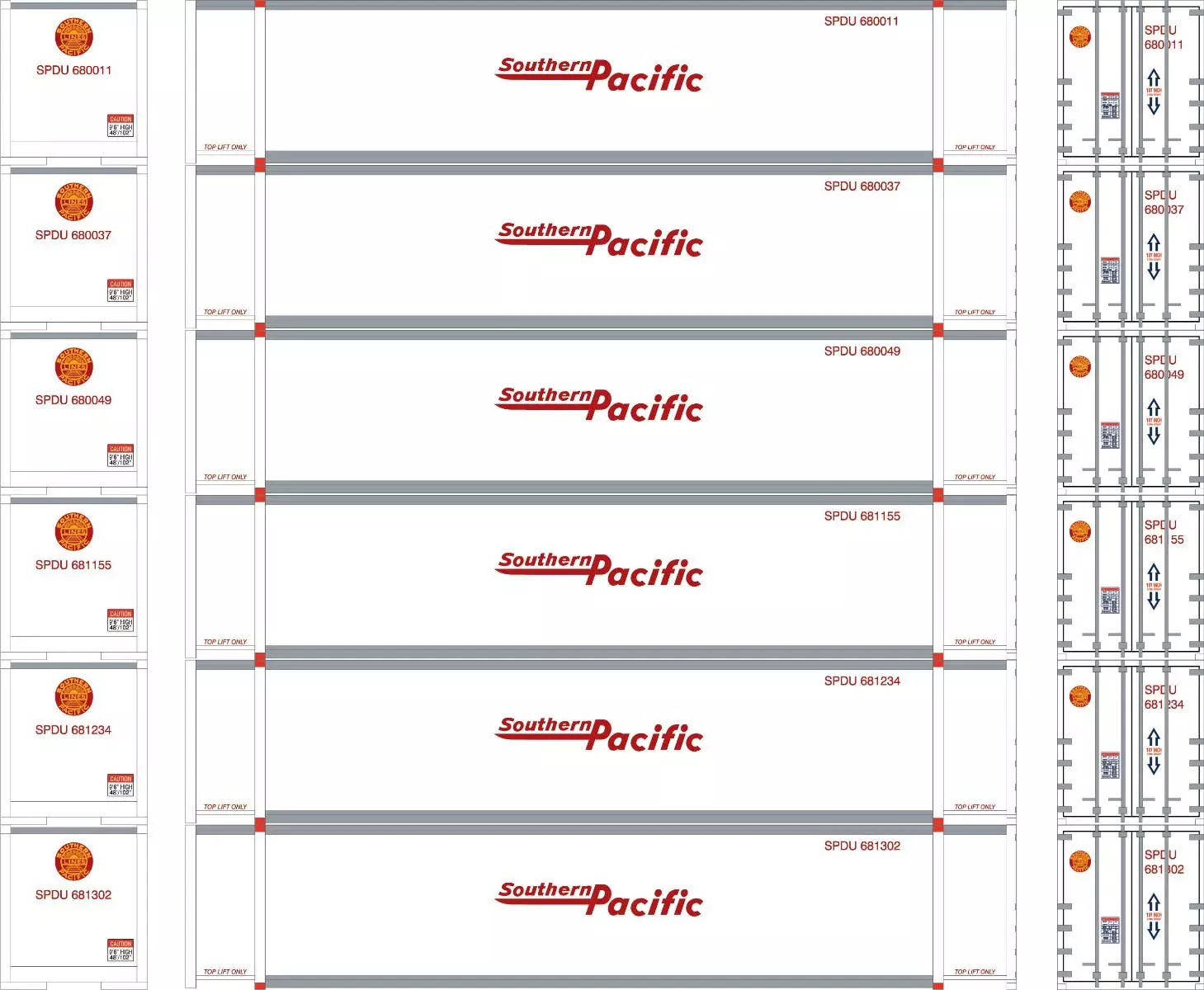 Athearn 28021 HO 48ft Container Southern Pacific #680011/680037/680049/681155/681234/681302 6 Pack