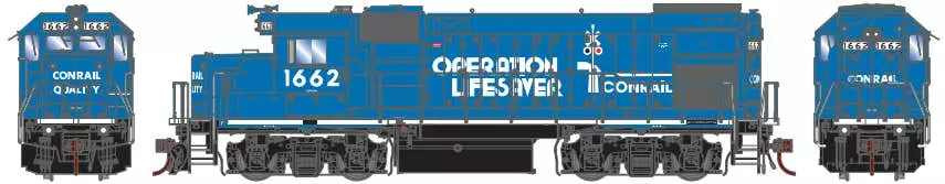 #1662 “Operation Lifesaver” logo, Hyatt bearings, small EMD plow on front end, ditch lights on both ends