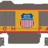 Different road number shown UP FEATURES • As renumbered to 3470-3775 in 2012 • 3681 as repainted with flag June 2015 • EOTD holder between starter capacitor box and fuel gauge • Front only ditch lights mounted on pilot face • Both Cab door options with and without window • Union Pacific specific cab antennas Union Pacific was the largest buyer of the SD90MAC with 309 units total the railroad designation was SD9043AC as they were delivered with the 710G engine rated at 4300hp. Taking delivery of the first locomotives in 1995 and the last in 1999 originally numbered in the 8000 series these locomotives were renumbered in 2012 and some are still on UP’s roster. 3681 is one of only a few SD90MACs to receive the flag paint scheme. SD90MAC SERIES LOCOMOTIVE FEATURES • Brand new model previously only available in brass • Fully-assembled and ready-to-run • DCC-ready features Quick Plug™ plug-and-play technology with 21-pin NEM connector • Accurately-painted and –printed paint schemes • Scaled from prototype resources including drawings photographs and more • Coupler cut levers • Rubber MU hoses • Trainline hose • See through cab windows • Full cab interior • Walkway tread • Windshield wipers • Lift rings • Wire grab irons • Sander lines • Fine-scale Celcon handrails for scale appearance • Detailed fuel tank with fuel fillers fuel gauges & breather pipes • McHenry® scale knuckle couplers – Kadee® compatible • Genesis driveline with 5-pole skew wound motor and precision machined flywheels • All-wheel drive with precision gears for smooth & quiet operation • All-wheel electrical pickup provides reliable current flow • Wheels with RP25 contours operate on all popular brands of track • LED Lighting for realistic appearance • Heavy die-cast frame for greater traction and more pulling power • Packaging securely holds for the model for safe storage GENESIS 2.0 FEATURES By integrating and pioneering some of the latest model advancements in the industry Athearn is redefining model fidelity with Genesis 2.0 • Etched see-through walkway steps • Illuminated number boards • Illuminated ground lights • DCC+Sound models feature dual Sugarcube speakers for optimal sound quality SOUND EQUPPED MODELS ALSO FEATURE • Onboard DCC decoder with SoundTraxx Tsunami2 sound • Dual cube speakers for optimal sound quality • Sound units operate in both DC and DCC • Full DCC functions available when operated in DCC mode • Engine horn and bell sounds work in DC • All functions NMRA compatible in DCC mode • Precision slow speed control • Program a multiple unit (MU) lashup with lead unit only horn bell and lights • Many functions can be altered via Configuration Value (CV) changes • CV chart included in the box PROTOTYPE SPECIFIC INFORMATION Introduced in 1995 the EMD SD90MAC was intended to become that builder’s most-powerful single-engine diesel locomotive. The new locomotive was to use EMD’s newly-developed 265H prime mover featuring 6000 horsepower. However this engine was experiencing technical problems in development which led to the first groups of locomotives being delivered with the EMD 710G prime mover of 4300 horsepower (the intent being to retrofit these with the more-powerful 265H at a later date). Ironically the technical problems with the 265H were never fully resolved and no conversions were done. The 710G-engined SD90MACs outlasted their later 265H cousins in service by a wide margin with some units only recently having been retired or sold by Union Pacific and other railroads choosing to rebuild them for continued service. The Athearn Genesis 2.0 SD90MAC features all of the cutting-edge detail and operational features that are expected by discerning modelers Working number boards and ground lights see-through steps numerous separatelyapplied details on the body and underframe and a heavy die-cast frame for massive pulling power.