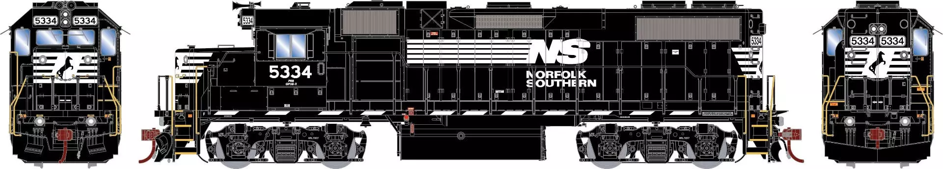 • #5334 Ex-CR #8166, late phase w/ corrugated grilles, front anticlimber and rear drop step, rear “weedcutter” plow, angled paper air filter box,