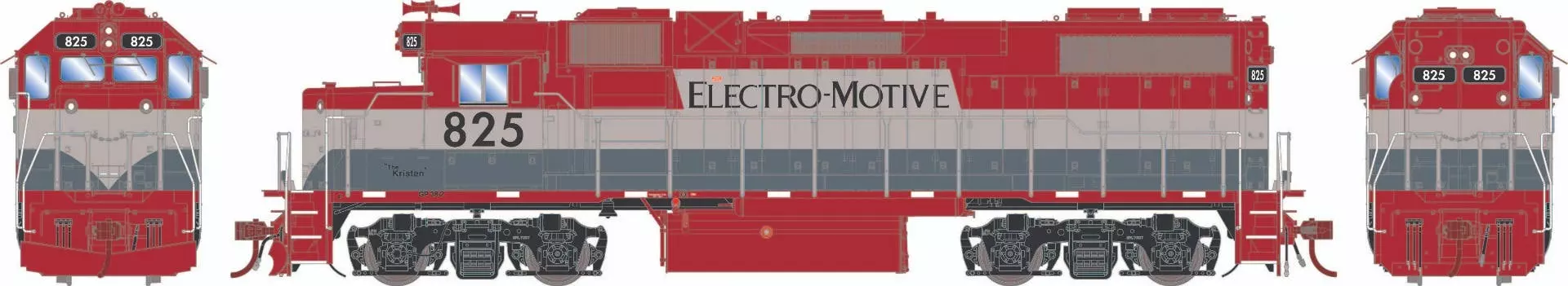 • #825 Ex-CR #8025, mid phase w/ chicken wire grilles, Nathan 3-chime horn, front “Weedcutter” plow, maroon fuel/air tanks, large cab numbers,