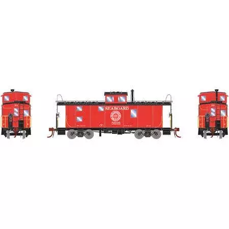 THE ULTIMATE DETAIL WITH THE BEST GENESIS FEATURES. International Car Co. began specializing in caboose production as early as 1941. When the railroads entered the 1960s many needed to replace their aging in some cases home shop built cabooses. International Car responded with a product that could be tailored to each railroads specific needs. Using quality components and modern engineering ICC became a leading name within the industry. Sharing ICC’s commitment to quality and modern techniques Athearn has not only recreated these iconic cars but reinvented the quintessential features a Genesis caboose should have. DCC lighting as a base standard with the option for sound will add a whole new dimension to operating sessions. Protect reverse moves and simulate train brakes begins to scratch the surface to the new dimension of realism. Better than brass detail™ Brand new tooling with many roads first time offered in plastic DCC LED lighting with the option of Sound by Soundtraxx Railroad specific detail and road number specific detail SAL FEATURES Brand NEW ICC SAL Style body Caboose trucks with friction bearing caps Rain gutters over side windows #5605 Red roof black underframe “Long Chances Shorten Lives” slogan #5677 Red roof & underframe. “A Man With Rest Is At His Best” slogan. #5601 & #5632 Black roof & underframe. As-delivered version with no safety slogans. ICC CABOOSE FEATURES Better than brass detail™ including roadname and road number specific detail Laser-Sharp Painting and Printing Interior seating for the addition of crew figures. See-through End Platforms and Steps Flush Window Glazing Wire-form Grab Irons Caboose trucks with animated rotating bearing or static friction bearing caps Axle Generator Details Body-Mounted McHenry® scale knuckle-spring Couplers Machined Metal RP25 Profile Wheel Sets Fully-assembled and ready-to-run out of the box Accurately painted and printed for prototypical realism Highly-detailed injection-molded body Separate wireform grab irons etched metal coupler platforms Coupler lift bars trainline hoses brake hoses and hardware Full underframe detail air brake reservoir control valve and brake cylinder with plumbing and brake rod details Machined metal wheels with RP25 contours operate on all popular brands of track Weighted for trouble-free operation Window packaging for easy viewing plus interior plastic blister safely holds the model for convenient storage Multiple road numbers Minimum radius 18” LED LIGHT EQUIPPED FEATURES LED lighting for long life and reliable operation On-board DCC Decoder by NCE Operates in DCC and Analog (DC) with lighting Functions Controllable in DCC Various classes will feature single or dual roof markers or end-mount marker lights per prototype and/or era LED Interior Lights All functions NMRA compatible in DCC mode SOUND EQUIPPED MODELS ALSO FEATURE Soundtraxx Tsunami SoundCar decoder w/ included sounds Air horn or conductor’s whistle as appropriate Clickety-clack with optional wheel flat spot sounds Brake set/release sounds including retainers and brake squeal ”Big Hole” emergency brake application sound Handbrake tie-down/release Adjustable flange squeal Air horn and bell sounds work seamlessly with Soundtraxx locomotive sound decoders Supports Advanced Consisting in DCC Full DCC functions available when operated in DCC mode All functions NMRA compatible in DCC mode PROTOTYPE INFO Perhaps one of the most recognizable icons of American railroading the caboose completed the train. Cabooses provided shelter for the rear end crew. From the cupola or bay windows the crew could keep a lookout for shifting loads damaged equipment and overheating axles. This was long required for switching and shunting and to keep a lookout for load shifting damage to equipment and cargo and overheating axles. As rail cars became larger in the late 1950s and early 1960s there was a real need for cabooses to have greater visibility for the crew. In the extended-vision or wide-vision caboose the sides of the cupola project beyond the side of the car body. This model was introduced by the International Car Company and saw service on most U.S. railroads. The expanded cupola allowed the crew to see past the top of the taller cars that began to appear after World War II and also increased the roominess of the cupola area.